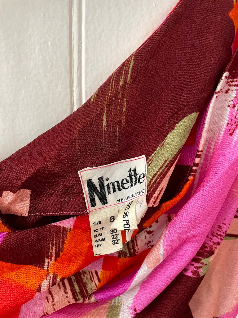 Vintage 70s colourful one shoulder maxi dress with cutout